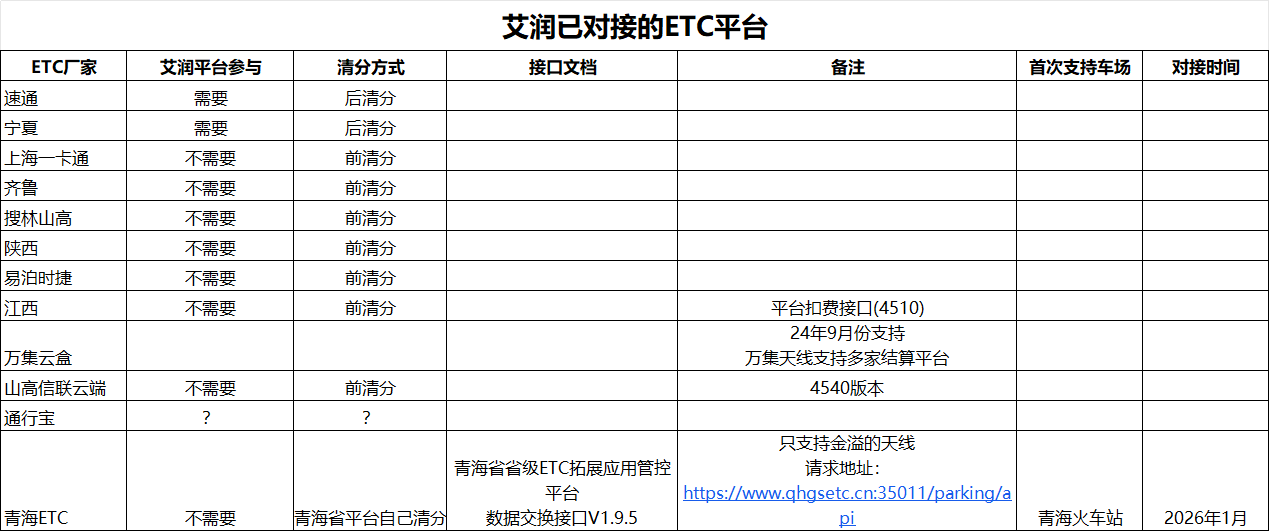 目录 搜索 展开 艾润三方对接充电减免对接电子发票支付对接支付ETC城市平台对接会员系统酒店及医院系统硬件对接 暂无相关搜索结果! 阅读次数:27 本文档使用 MinDoc 发布 支付ETC 作者:admin 创建时间:2026-03-04 13:00最后编辑:admin 更新时间:2026-03-04 13:14